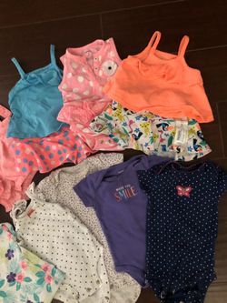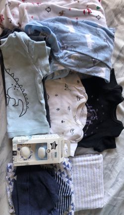 Baby cloths 0-3 months and 2 6-9 months sleepwear onesies , two 0-3 hats and 0-6 baby pacifier never used.$3North Las Vegas, NV
