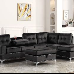 Black Velvet Sectional With Ottoman $750Las Vegas, NV