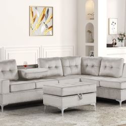 Fog 3pc Sectional Set w/ USB Port and Storage Ottoman 👍90 days FREE FINANCING ❗ $690Las Vegas, NV