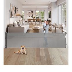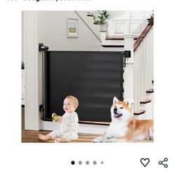 New! Black 96” Wide Reinforced Retractable Baby Pet Gate w Support Rods, Extra Long Dog Gate$50Las Vegas, NV