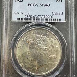 1923 OGH 4.1 UNCOMMON old OG Holder Silver Dollar Pcgs MS63 Peace Philly Mint$270Las Vegas, NV