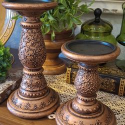 Ornate Pillar Candle Holders Set Boho World Market 6.5"-9.5" Bronze Rose Gold$20Las Vegas, NV