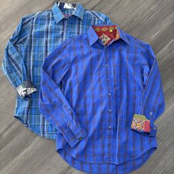 Robert Graham Button Down Shirt Men's M Blue Windowpane Plaid Flip Cuff Lot of 2$60Las Vegas, NV