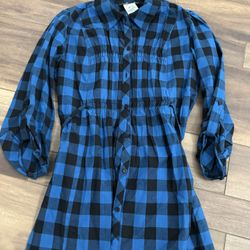 Women’s blue white plaid tunic thin shirt dress with brown belt size medium$17Las Vegas, NV