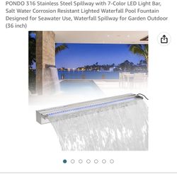 PONDO 316 Stainless Steel Spillway with 7-Color LED Light Bar, Salt Water Corrosion Resistant Lighted Waterfall Pool Fountain Designed for Seawater Us$138Las Vegas, NV