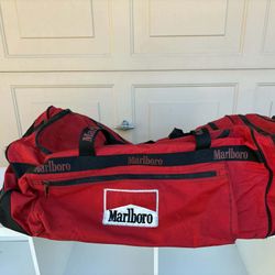 Vintage 90s Marlboro Duffle Bag 30x16x12 Crimson Red Nylon Canvas Rolling Bag$150Henderson, NV