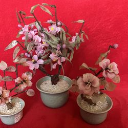 Vintage Chinese Jade Tree Glass Pink Flowers Leaves Floral Sculpture Bonsai 7" - 9.5" - 12.5" ‼️ Price Is FIRM ‼️$59Las Vegas, NV