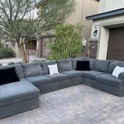 New Large Boneless Grey Corduroy Cloud Sectional Sofa Couch$750Enterprise, NV