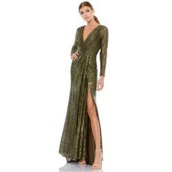 MAC DUGGAL size 8 SEQUINED WRAP OVER BISHOP SLEEVE GOWN DRESS$349Las Vegas, NV