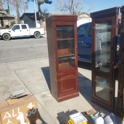 Large Curio Cabinets Set Can Be Separate Or Together Oak Heavy Glass Shelves $800Las Vegas, NV