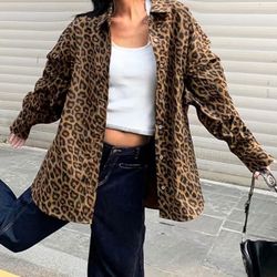 loveimgs Women Vintage Leopard Print Jacket Fall Button Down Shirt Oversized Shacket Open Front Cardigan$5Las Vegas, NV