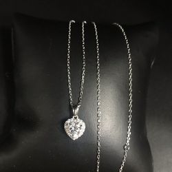 925 Sterling Silver 1.00CT MOISSANITE Halo Heart Pendant Necklace Size 18”$79Henderson, NV