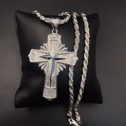 925 Sterling Silver 3D Cross Pendant Rope Chain men’s Necklace Size 22”$159Henderson, NV