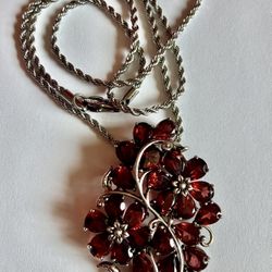Gorgeous RED GARNET FLOWER STERLING SILVER PENDANT NECKLACE 16.2ctw STERLING SILVER PENDANT NECKLACE ** 4.5cm H x 2.5cm W ~ 18" ~ CHRISTMAS Gift$199Las Vegas, NV