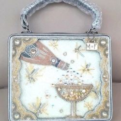 NWT Mary Frances Make It Pop Top Handle Handbag Party Drink Silver Bag New