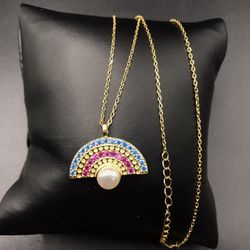 925 Gold Over Sterling Silver Multiple Stone Pearl Necklace Size 18β Adjustable $45Henderson, NV