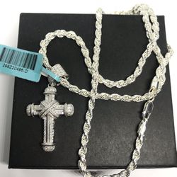 925 Sterling Silver CZ Cross men’s Pendant Rope Chain Necklace Size 24”$249Henderson, NV