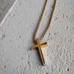 S925 Silver Christian Catholic Cross Charm With Normal Wear N Gold Tone Appearance...Plus Gold Chain Necklace...Very Nice!$60Las Vegas, NV