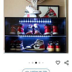 Sneaker Throne Shoe Rack with Lights for Up To 6 Pairs - Black Wooden Shoe Shelf with Sliding Doors for Bedrooms,$65Las Vegas, NV