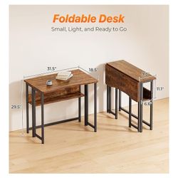 Huuger Folding Desk with Storage Shelf, 31.5 Inch Foldable Computer Table for Small Spaces, Space Saving Sofa Table for Couch, Writing Work Office Com$35Las Vegas, NV