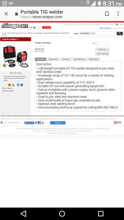 Snap on Tig and rod welder$1,700Las Vegas, NV