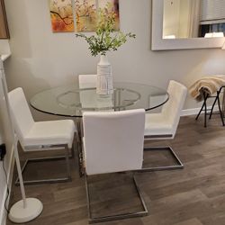 Chrome/glass Round Dining Table With 4 White Leather Chairs. $300Las Vegas, NV