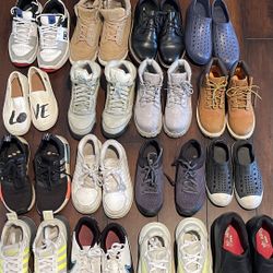 Kids Shoes up left to Right DC size 4y $10 Boots light brown size 4Y $15 Black dress shoes size 4Y $15 Robber water shoes 2.5y $5 White Tom’s Gir$25Las Vegas, NV