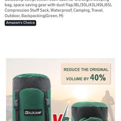 GoldCamp compression stuff sack for Ultralight sleeping bag, space saving gear with dust flap,18L/30L/43L/49L/65L Compression Stuff Sack, Waterproof, $10Las Vegas, NV