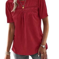 Women's Size L Short Sleeve Shirts Round Neck Lace Tunic Tops Soft Ruffle Pleated Chiffon Blouses$9Las Vegas, NV