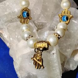 Faux Pearl Bead and Hamsa Hand with Evil Eye Stretch Bracelet$7North Las Vegas, NV