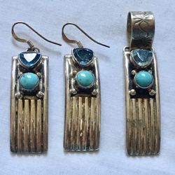 HSN CHACO CANYON Genuine TURQUOISE BLUE TOPAZ Gemstone Sterling Silver Pendant Earrings Set$299Las Vegas, NV