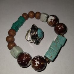 TURQUOISE+BRASS NECKLACE+RING$35Las Vegas, NV
