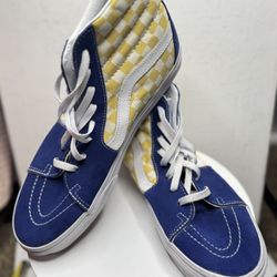 These are the blue and yellow Vans BMX Sk8-Hi sneakers with a checkered print.$30Las Vegas, NV