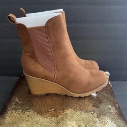 Celia Women's Wyatt Wedge Chelsea Booties Cognac Upper Textile Size 8$42Las Vegas, NV