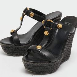 VERSACE'S Black Leather Embellished WEDGE HEELS $280Las Vegas, NV