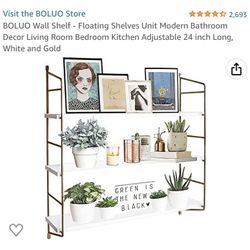BOLUO Wall Shelf - Floating Shelves Unit Modern Bathroom Decor Living Room Bedroom Kitchen Adjustable 24 inch Long, White and Gold$25Las Vegas, NV