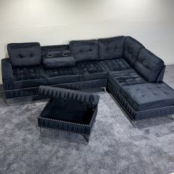 🔥🔥Modern Black L-Shaped Sectional Sofa with Ottoman – Faux Leather🛋🔥🔥$540Las Vegas, NV