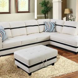 White Sectional w/ Storage Ottoman (Right Chaise)🔥Clearance🔥 Save $130👍90 days FREE FINANCING ❗NO CREDIT CHECK❗ $599Las Vegas, NV