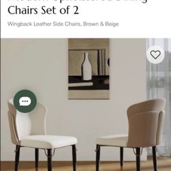 New Povision Modern Luxury Leather Dining Chairs Set of 2 Wingback Accent Chairs Beige & Brown $150$150Enterprise, NV