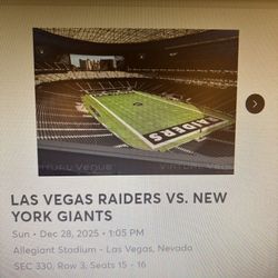 Raiders Vs Giants Tickets 12/28/25 - Section 330 Row 3 ***Aisle Seats ***- Price Is Per Ticket$100Las Vegas, NV