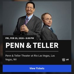 Penn & Teller 4 Tickets$300Las Vegas, NV