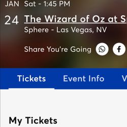 1 Ticket For wizard Of Oz Show At The Sphere On Dec. 24$120Las Vegas, NV