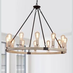 #1063L-Farmhouse Wagon Wheel Chandelier Light Fixtures,Oak White and Black,12-Lights Metal Large Luxury High Ceiling Chandeliers for Dining Room Kitch$60Las Vegas, NV
