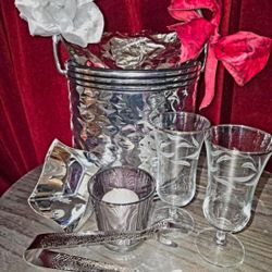 Ice Bucket with 2 Wine Glasses Silver Trim,candle ,Bowl& Ice Tongsl$28Las Vegas, NV