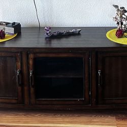 Dark Mahogany Espresso Modern Long Rectangular Media Big Screen TV Stand Glass Shelves Drawers Storage$200Las Vegas, NV