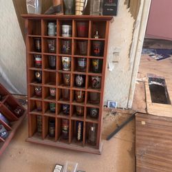 Large Shot Glass Collection w/ Solid Wood Display Rack $175Las Vegas, NV