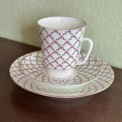 Lomonosov Bone China Tea Cup Saucer Pink Net Flowers Made In Russia Set of 3 $30Las Vegas, NV