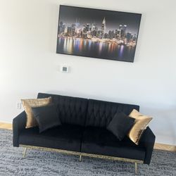 Black Velvet Tufted Sofa with Gold Legs – Modern Glam$300Las Vegas, NV