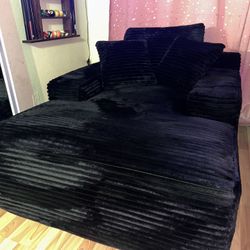 Midnight Black Chaise Lounge, Boneless, Cloud Plush Corduroy Sofa $200 - READ Description$200Las Vegas, NV
