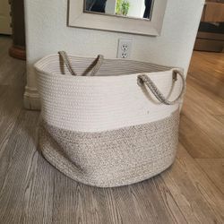 Large woven rope storage basket Neutral white & beige tones Sturdy with handles Perfect for blankets, laundry or home storage Great condition $15Las Vegas, NV